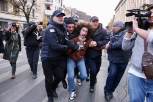 Home/Photo Story | Police Use Force to Disperse 48-Hour Protest Near TSU/Student being arrested by the police Student being arrested by the policeThis post is also available in: ქართული Русский
