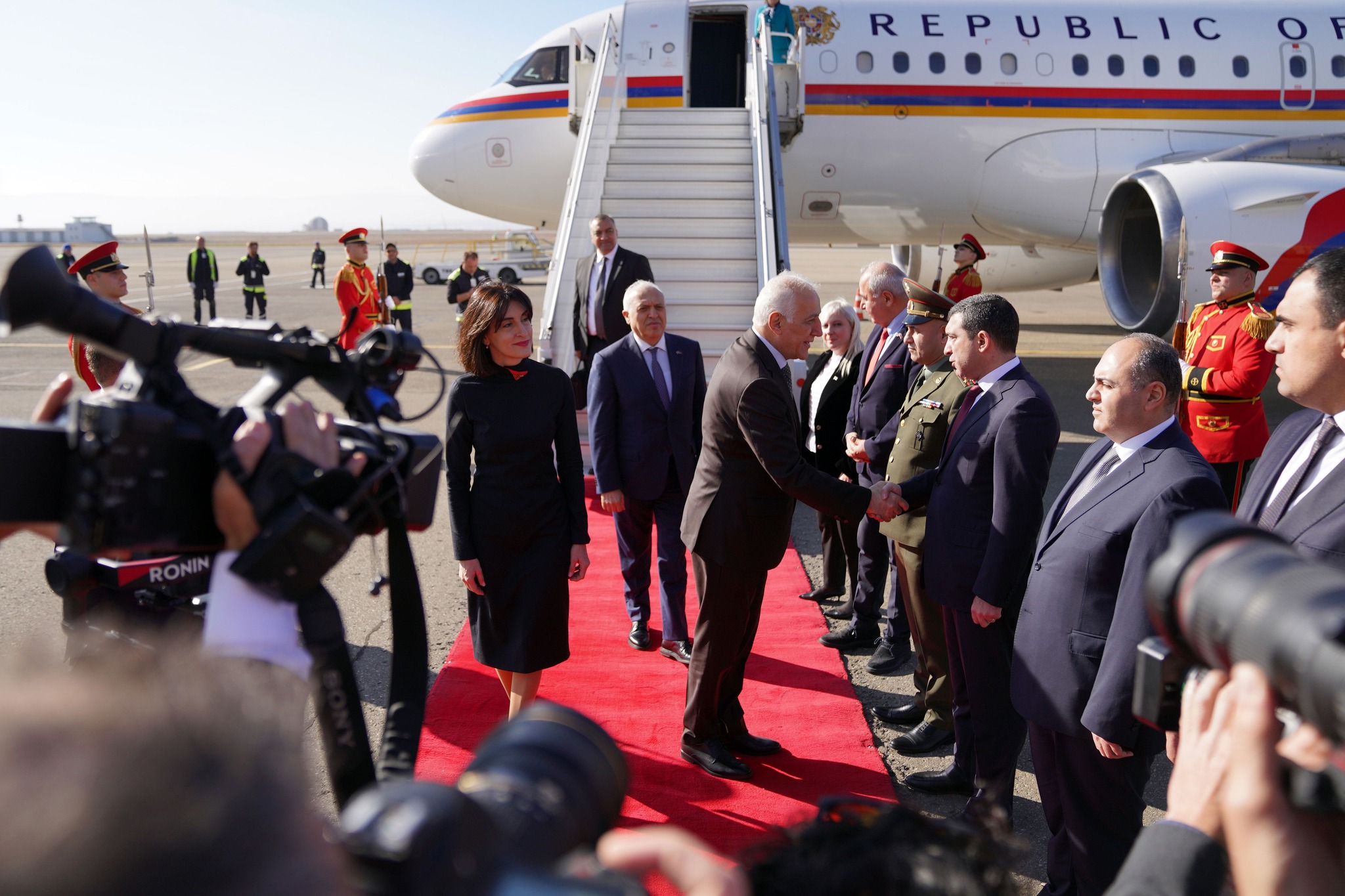 Armenian President Vahagn Khachaturyan is visiting Georgia. He arrived at Tbilisi airport on November 19, where he was welcomed by Georgian Dream Foreign Minister Maka Botchorishvili, the head of the Presidential Administration Ketevan Kvinikadze, and Georgia’s Ambassador to Armenia, Giorgi Sharvashidze.