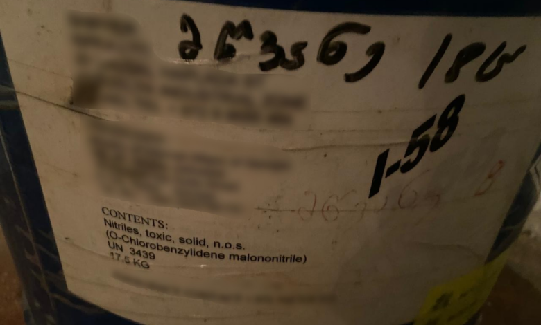 O-chlorobenzylidene malononitrile, aka CS gas, is a compound most commonly used by law enforcement agencies as a tear-gas agent in crowd-control operations. The SSSG did not specify whether the substance was mixed with water-cannon streams, as implied in the BBC report, but said it was used with a solvent.