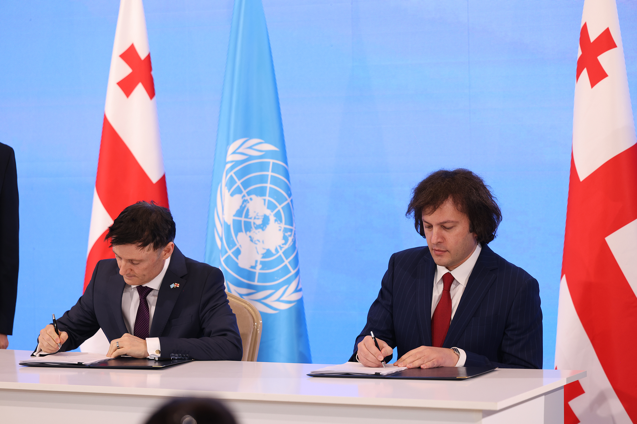 Opening the ceremony, Irakli Kobakhidze said the new five-year framework agreement lays the foundation for “future cooperation,” is based on Georgia’s “national priorities,” and reflects “the spirit of the UN Sustainable Development Goals.”
