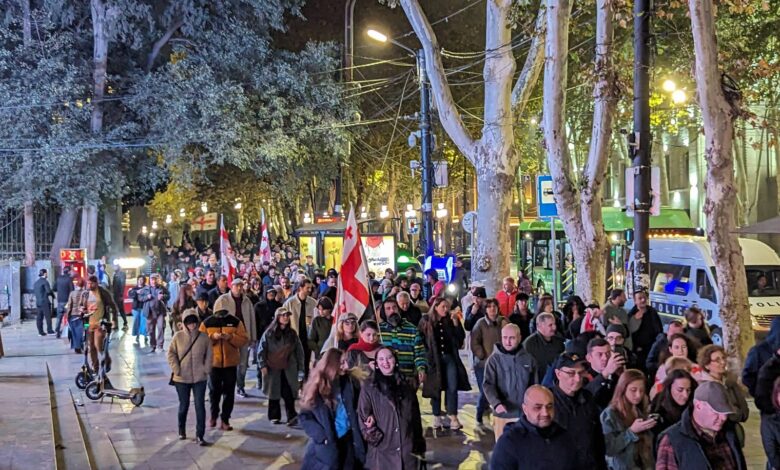 The changes came amid year-long anti-government protests. Starting in November, after the latest amendments, police prevented protesters on Tbilisi’s Rustaveli Avenue, where they had routinely blocked traffic each night, from continuing to block the road, prompting them to switch to evening marches through the city center as an alternative form of protest. Detentions, however, continued during these marches.