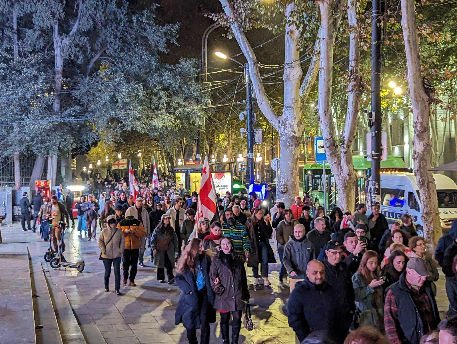 The changes came amid year-long anti-government protests. Starting in November, after the latest amendments, police prevented protesters on Tbilisi’s Rustaveli Avenue, where they had routinely blocked traffic each night, from continuing to block the road, prompting them to switch to evening marches through the city center as an alternative form of protest. Detentions, however, continued during these marches.