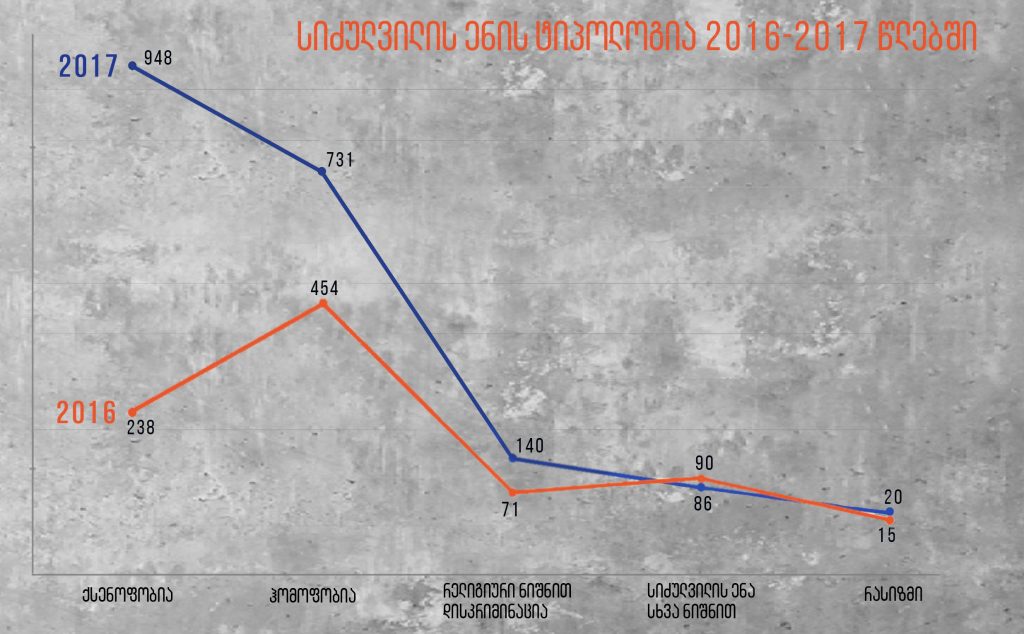 ანგარიშის თანახმად, 2016 წელთან შედარებით, ქსენოფობიური გზავნილების მკვეთრი ზრდა, ანტიმიგრანტული, თურქოფობიური და არმენოფობიური განწყობების მოჭარბებით არის განპირობებული.