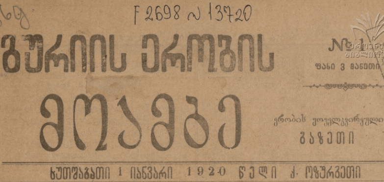 ოზურგეთის სამაზრო ერობის გამგეობამ გადასწყვიტა გამოსცეს ყოველკვირეული გაზეთი სახელწოდებით „გურიის ერობის მოამბე“. გაზეთის პირველი ნომერი გამოვა 1 იანვარს 1920 წლისა. გამგეობამ აირჩია სარედაქციო კოლეგია 3 კაცისაგან. გაზეთში იქნება როგორც ოფიციალური, ისე არა ოფიციალური განყოფილება. გაზეთში მოთავსდება საგულისხმო დადგენილებანი, როგორც სამაზრო, ისე სათემო ერობისა, მოხსენებები და საერთოდ ყოველგვარი ცნობა ერობების შესახებ აგრეთვე საერთო ხასიათის წერილები.