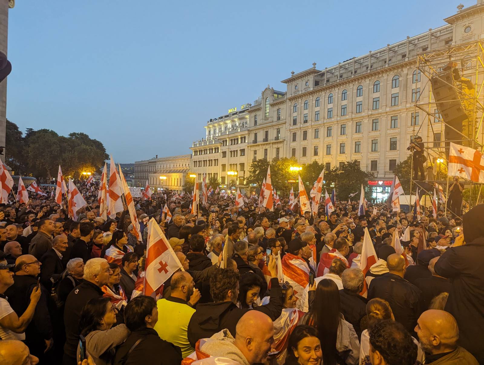 მომიტინგეებმა პრეზიდენტის სასახლის ჭიშკარი შეანგრიეს და სასახლის ეზოში შევიდნენ. სპეცრაზმი მათ უკან გასვლას აიძულებს.