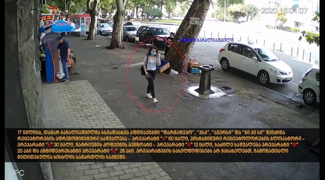 К заявлению прокуратуры прилагается видеоматериал из камер наблюдения аптек, в которые Бачалиашвили заходила за лекарствами.
